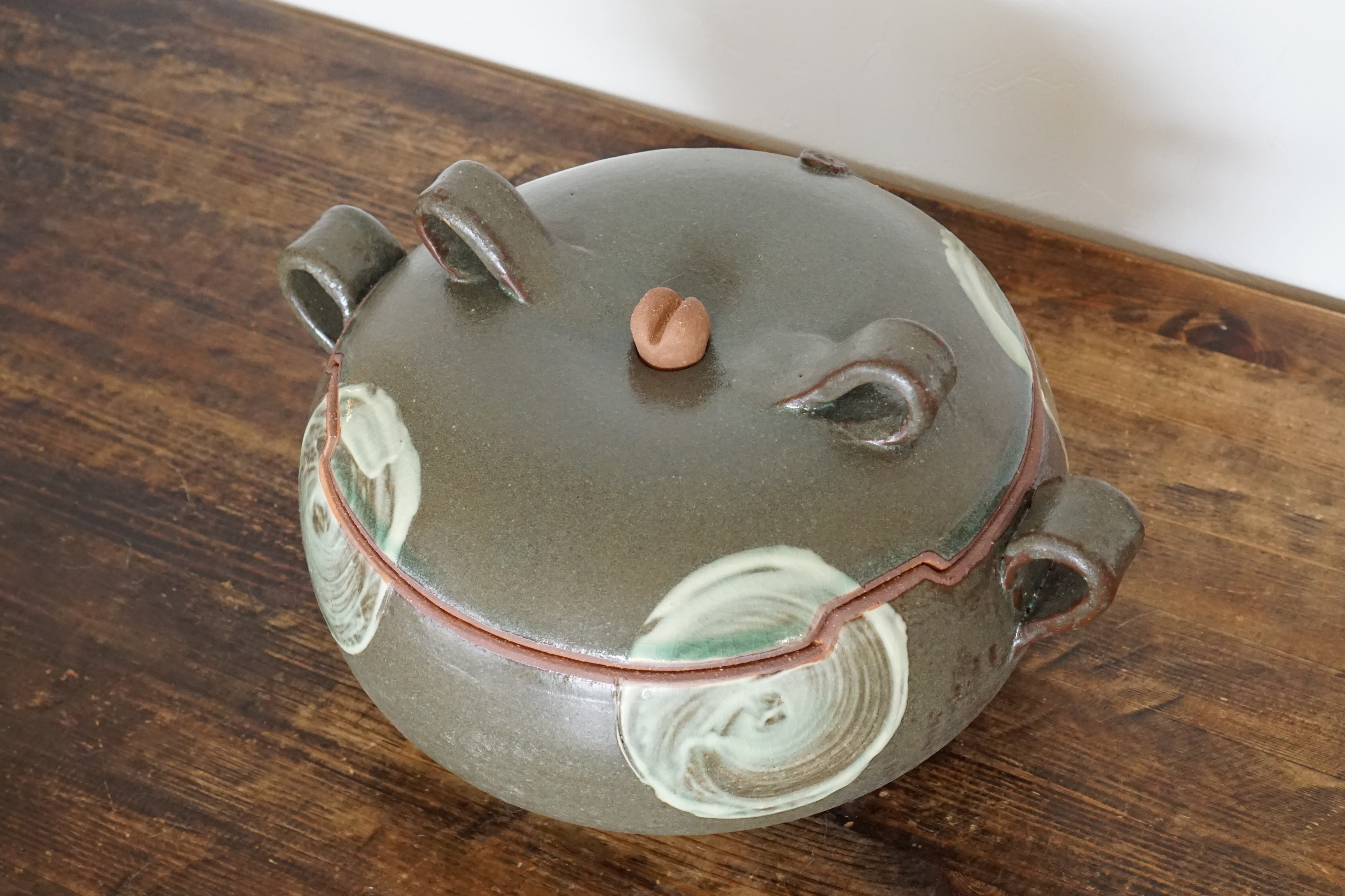 コロンとしたフォルムが愛らしい土鍋です。