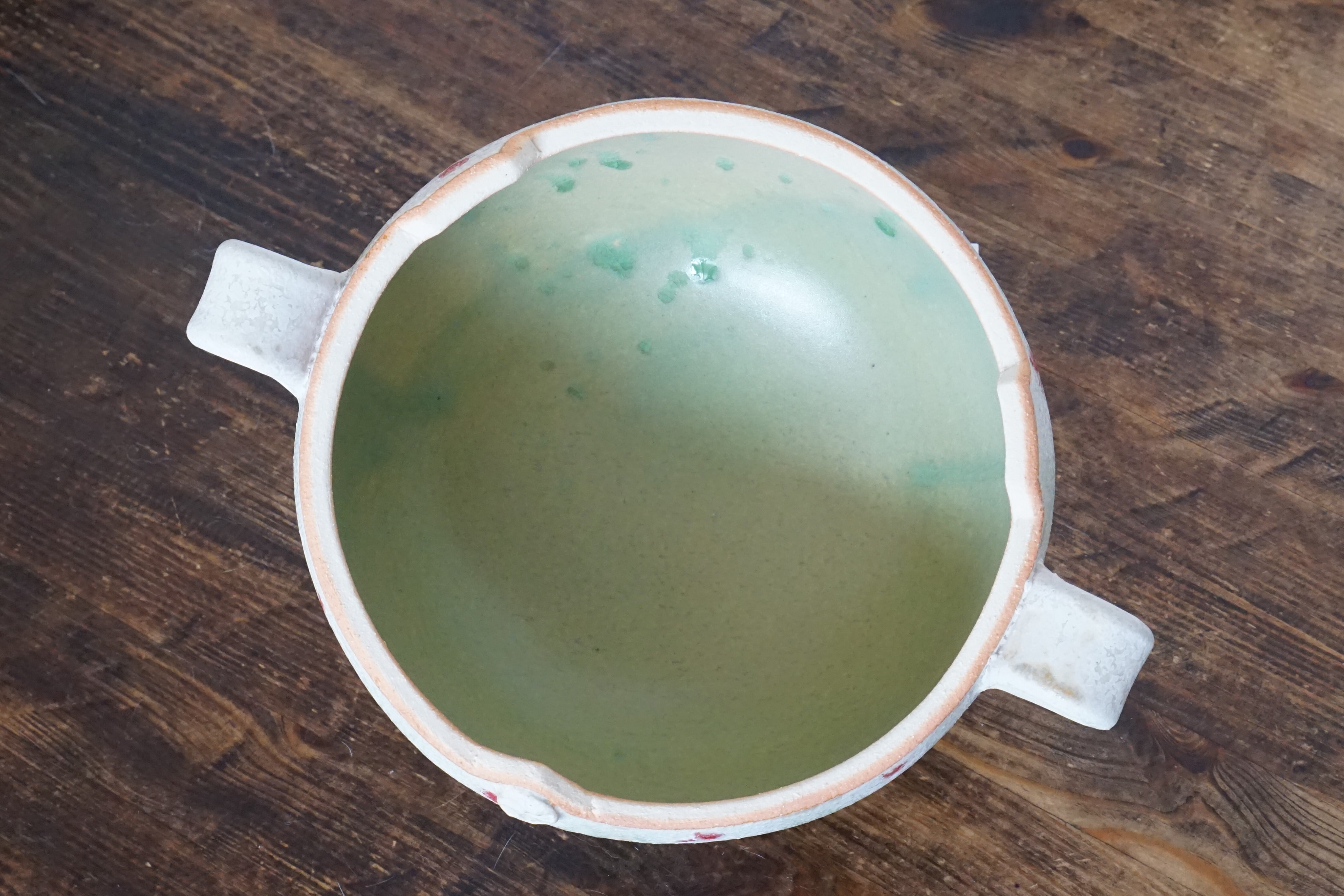 内側には、焦げ跡がつきにくく取れやすい釉薬を施しています。